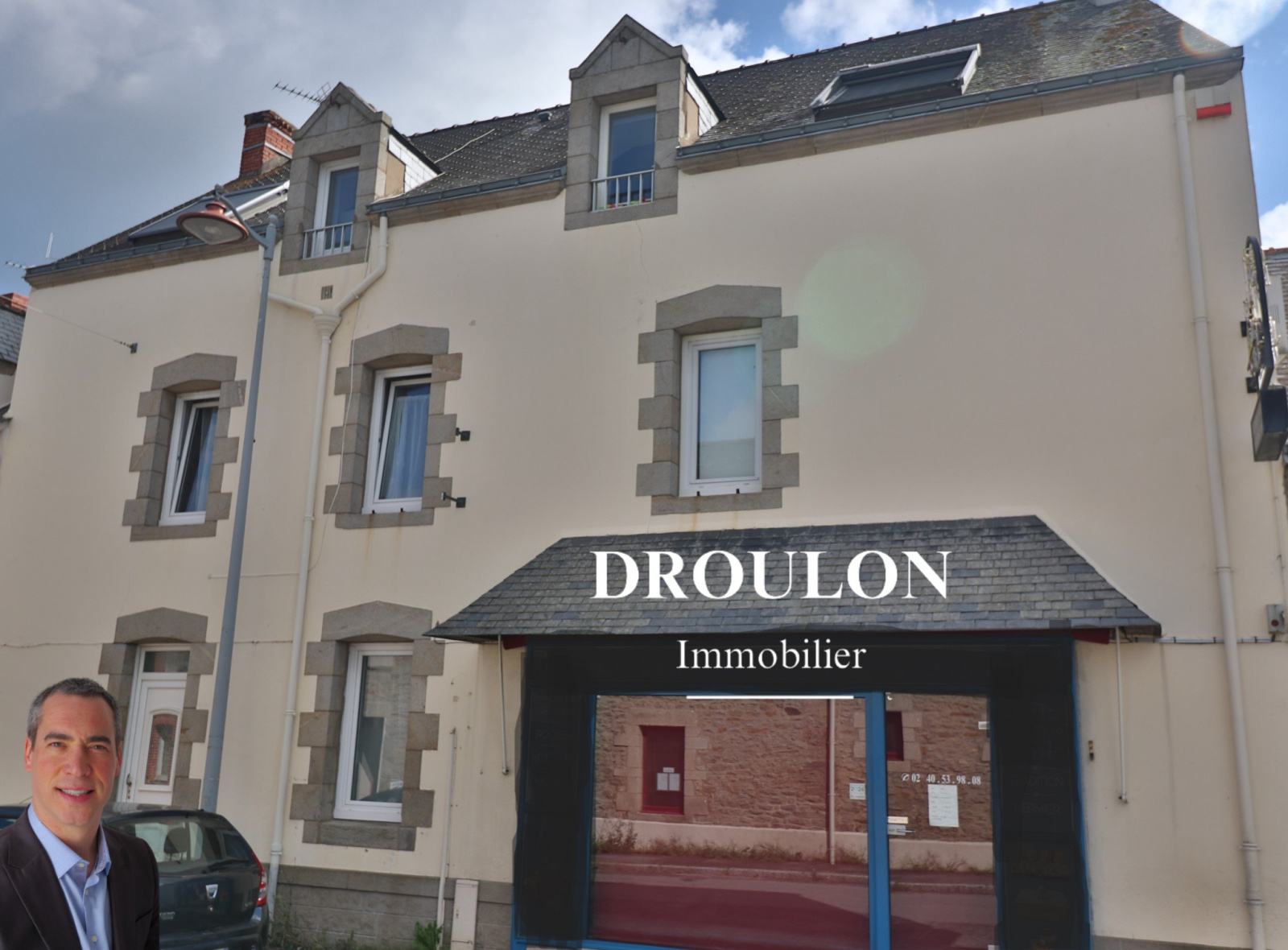 Saint-Molf, immeuble mixte d'environ 400m², composé d'un local commercial (env.140m²) et de trois appartements (un T5 et deux T3), garage, cour, caves. Baux en cours.